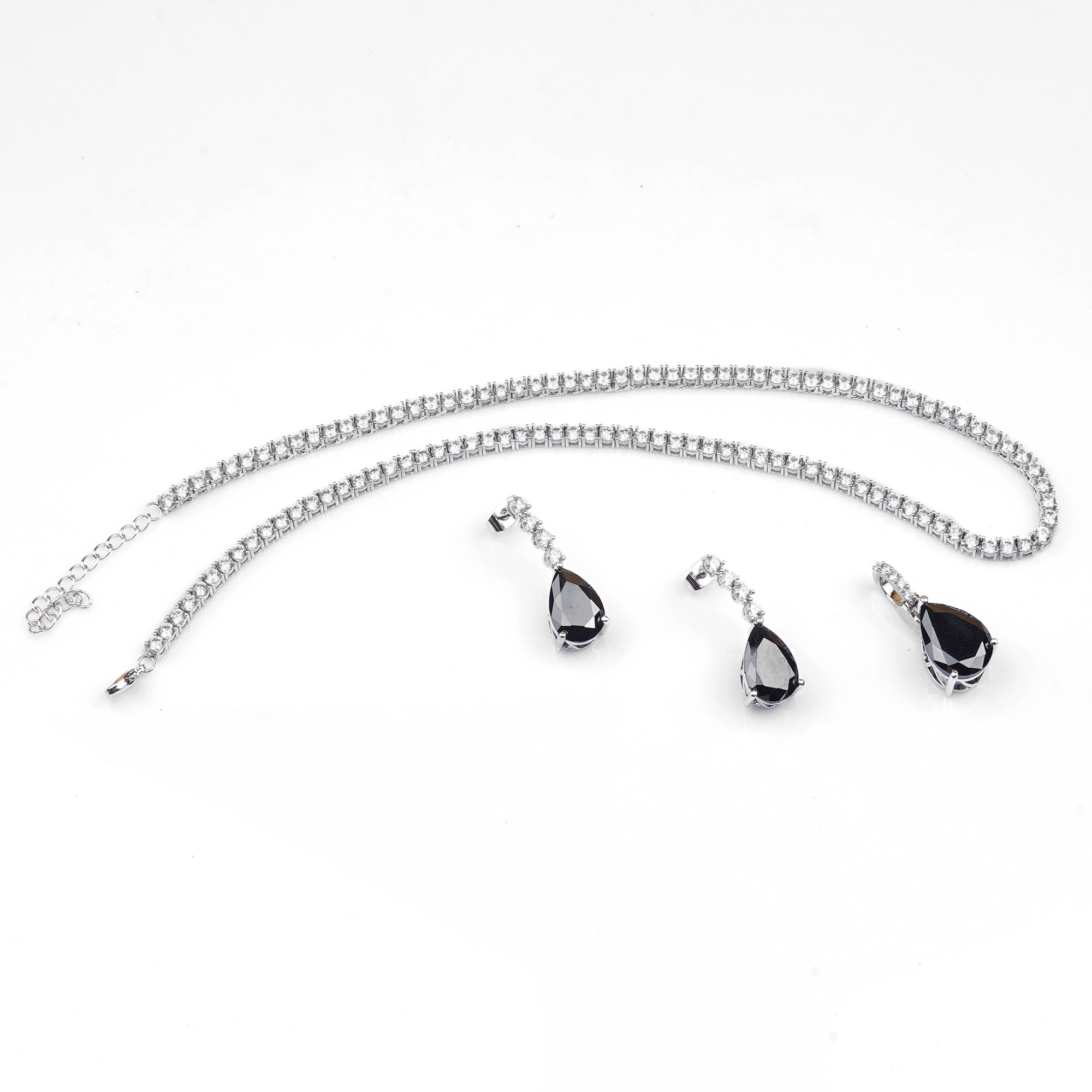 Adorn yourself in the sophisticated beauty of the "Nightfall" jewelry set. This elegant collection features a delicate chain of brilliant white gems, leading to a stunning teardrop-shaped centerpiece....