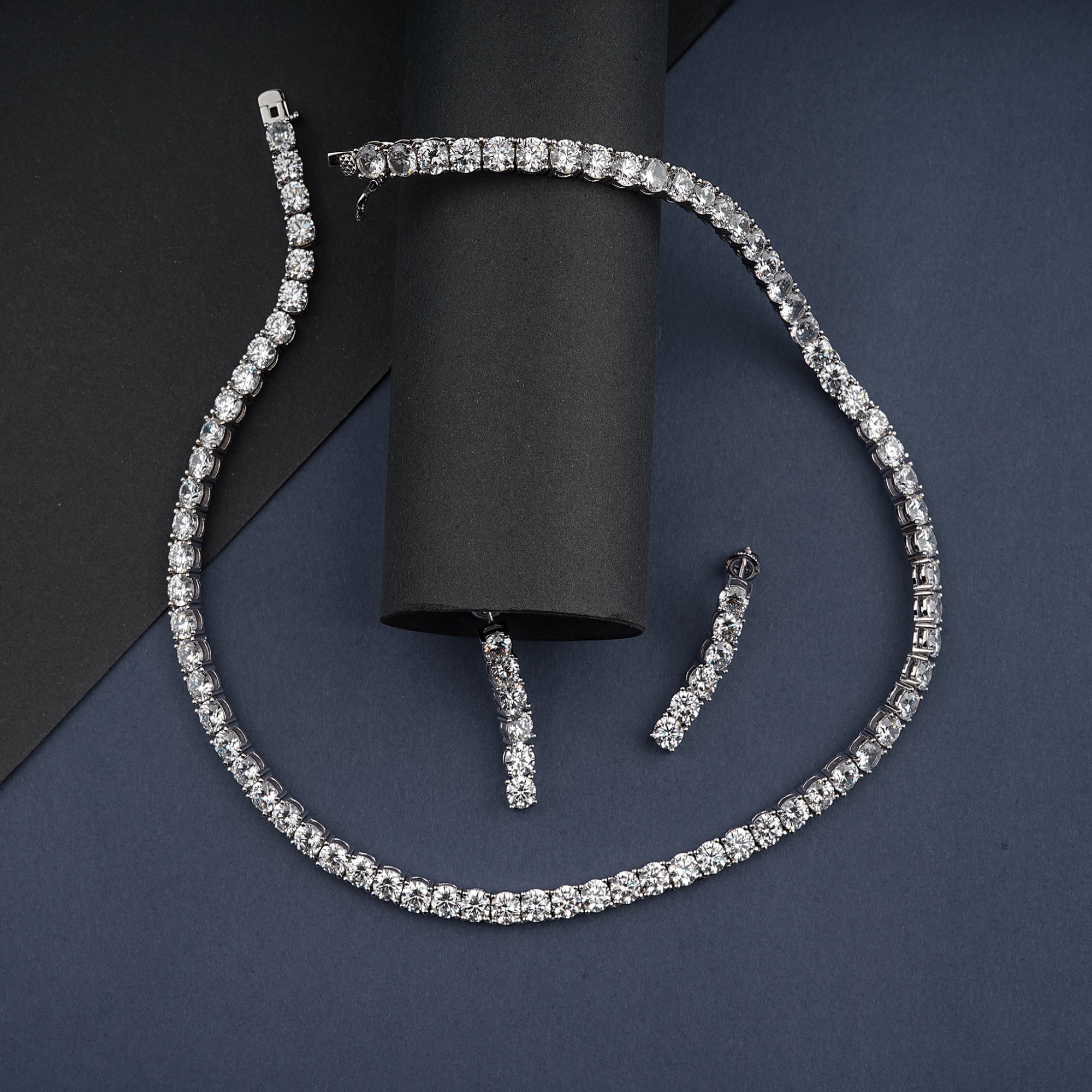 This elegant tennis necklace and earring set is a must-have for any collection. The brilliant, clear stones and silver-toned setting create a timeless look, perfect for adding sophisticated sparkle to...